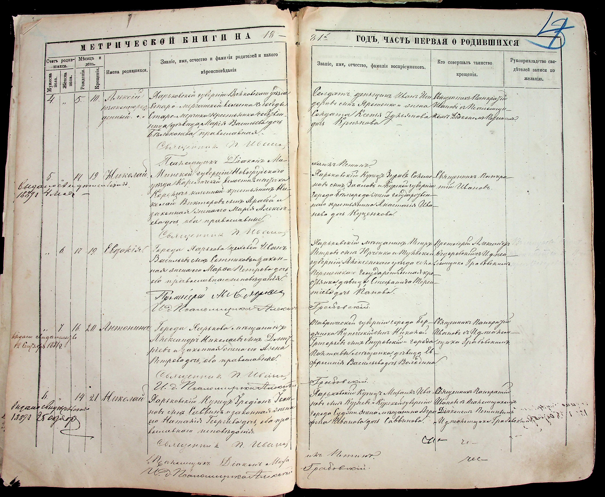 Всіхсвятська церква. 1889. №261. Рождение: Андрей Дмитриев, родители: Николай Афанасьевич Дмитриев рядовой из мещан Харькова и Мария Михайловна.